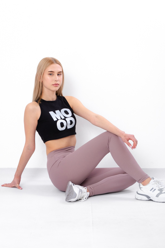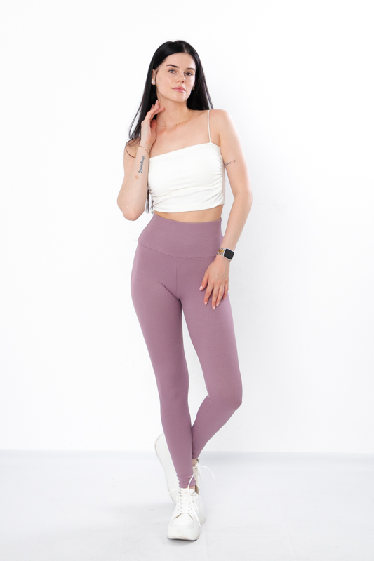 Жіночі лосини виконані з трикотажного полотна – рубчик. Висока посадка створює ефект подовження ніг і надає силуету стрункішого вигляду. Підходять для спортивних занять та повсякденного носіння.