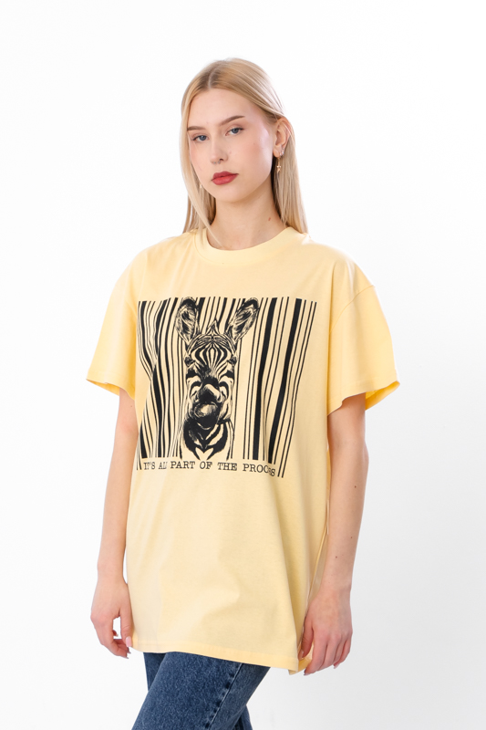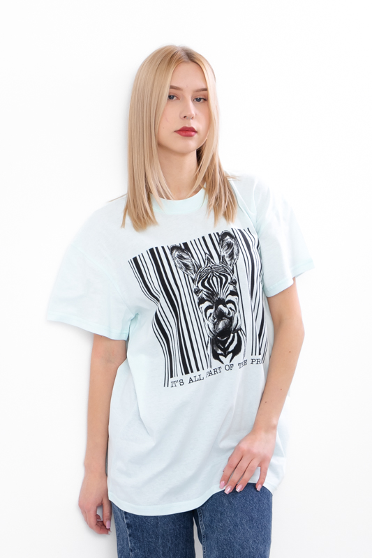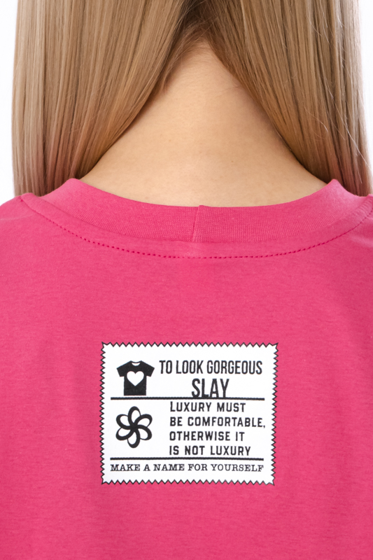 Догляд: машинне прання при температурі до 30°C на делікатному режимі; сушити природним способом або на низькій температурі в сушарці; прасувати при середній температурі, уникаючи ділянок з принтом.