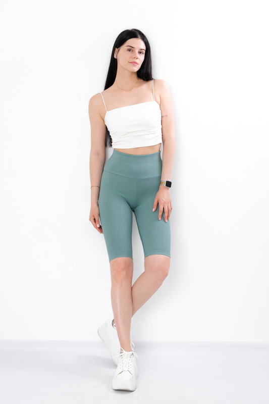 Велосипедки жіночі пошиті з трикотажного полотна - рубчик. Зручні та практичні, підійдуть для занять спортом та прогулянок. Мають широкий втачний пояс, що дає невеликий ефект утяжки. Чудово поєднуються з однотонною або кольоровою футболкою або топом.