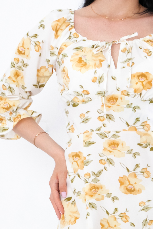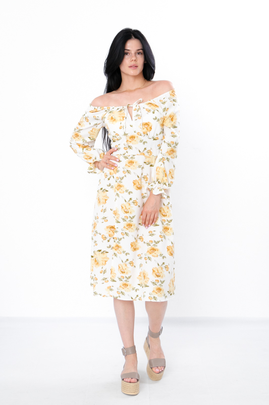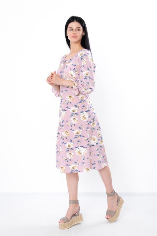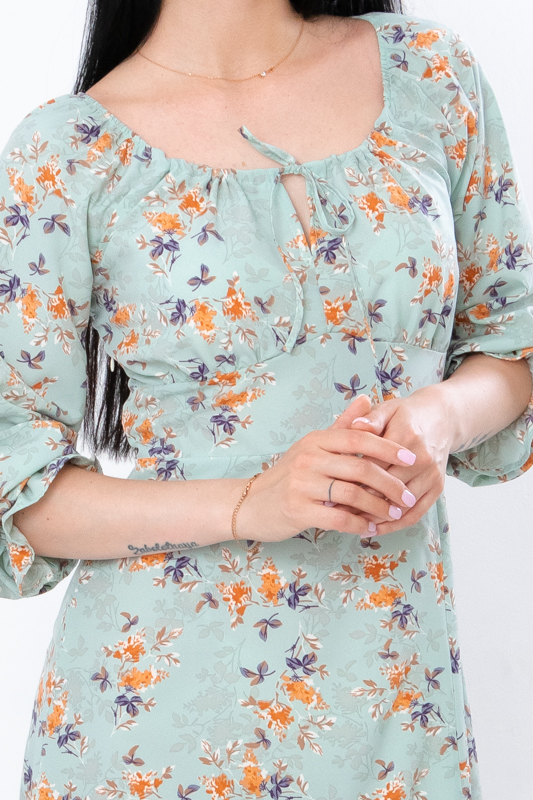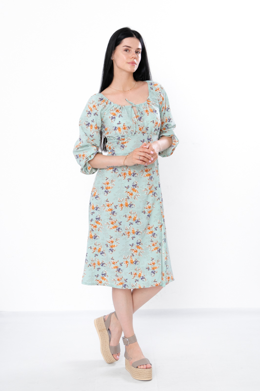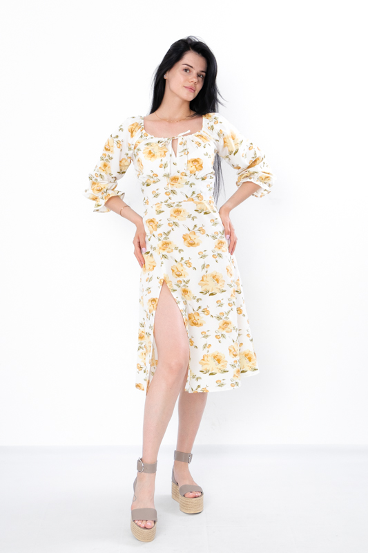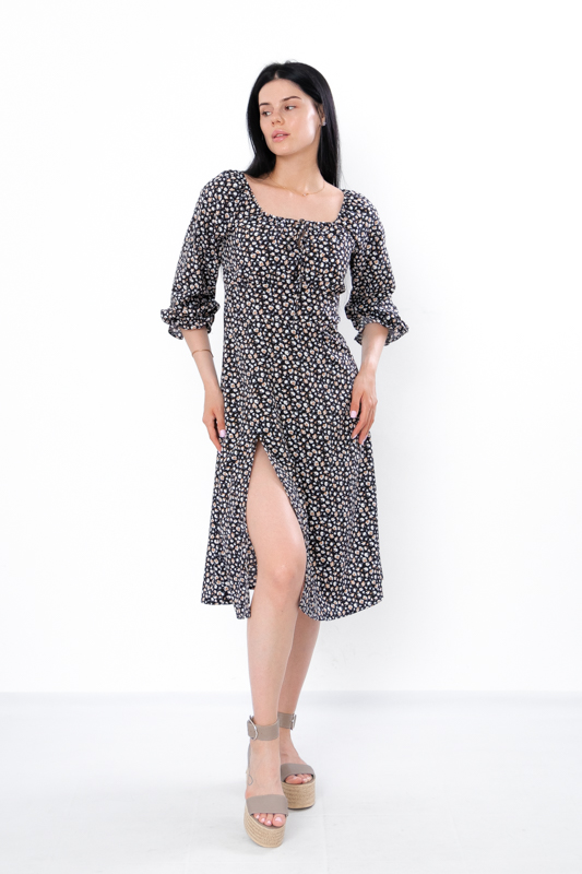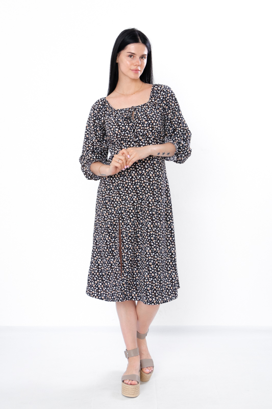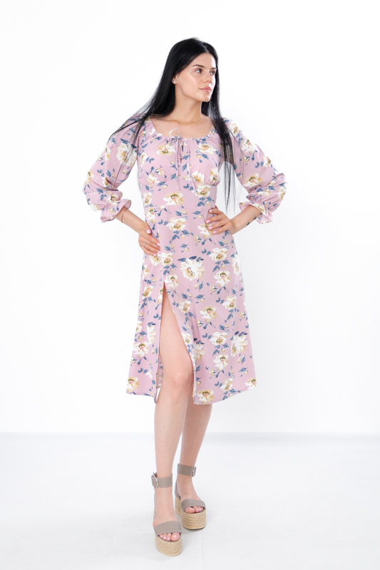 Жіноча сукня виготовлена з м'якого та приємного до тіла принтованого софту, що забезпечує комфорт протягом усього дня. Рукава додають елегантності та стилю, а розріз з боку надає нотку грайливості та підкреслює фігуру.