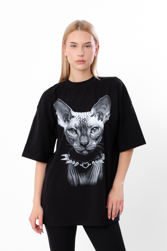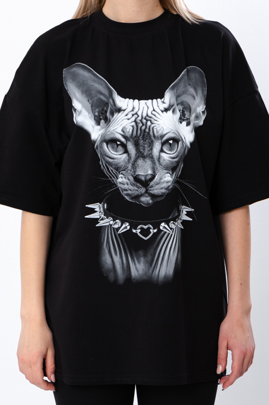 Футболка жіноча оверсайз з принтом кота-сфінкса