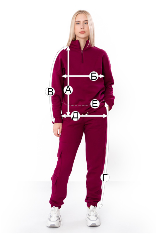Костюм зручний і комфортний, виготовлений із трьохнитка петля з начосом (60% бавовна, 25% віскоза, 12% поліестер, 3% еластан).