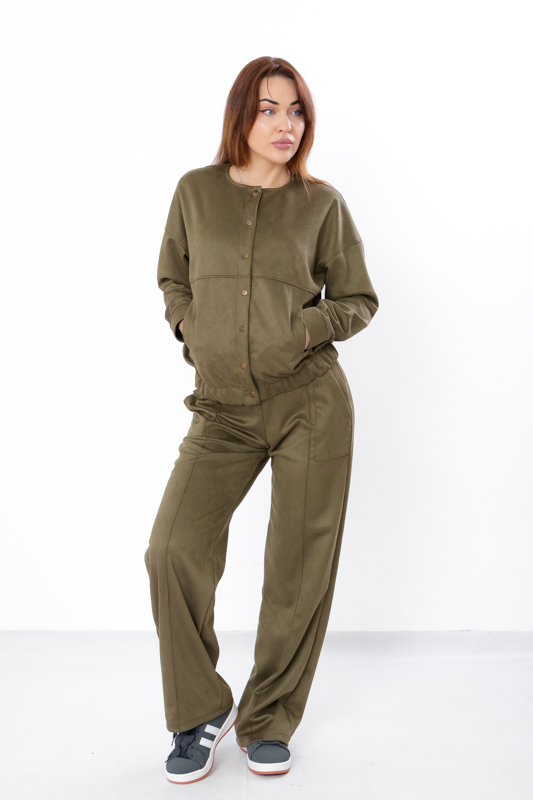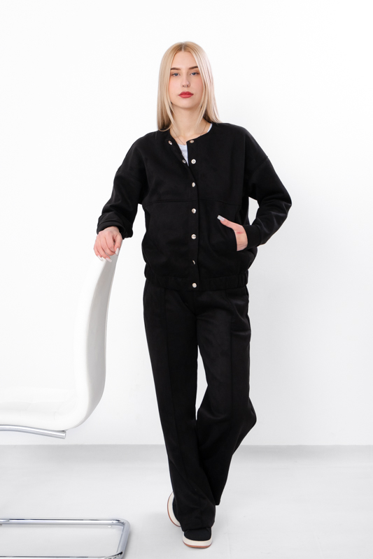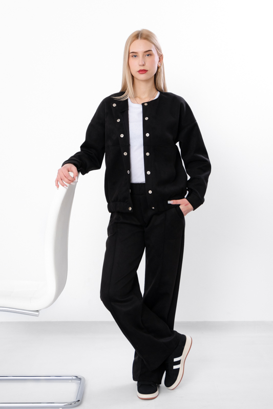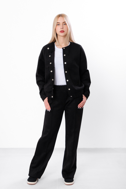 Цей костюм поєднує легкість, комфорт та вишуканий вигляд. М'який замш на дайвінгу приємно прилягає до тіла, не сковує рухів та виглядає елегантно. Бомбер на кнопках забезпечує універсальність, а широкі штани з кишенями додають практичності. Модель ідеально підійде як для роботи, прогулянок, подорожей, так і для вечірніх виходів. Завдяки бомберу на кнопках та широким штанам з кишенями костюм виглядає ефектно та забезпечує максимальний комфорт.