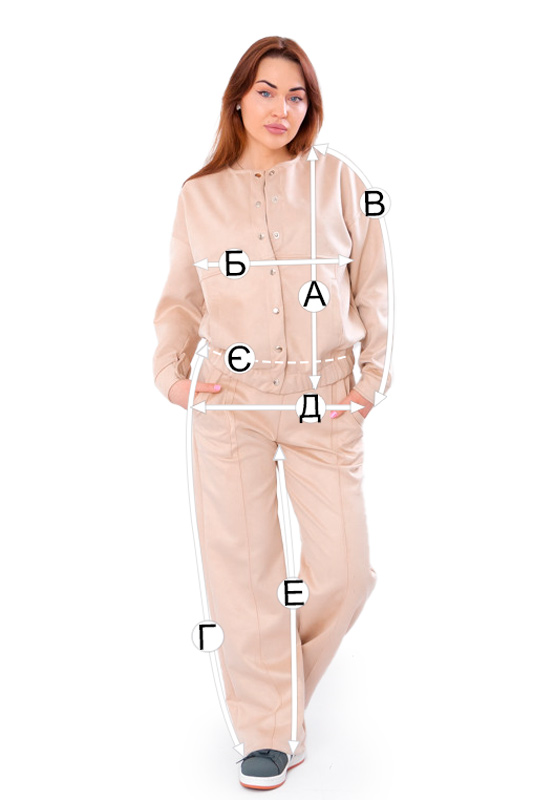 | Г - Довжина штанів по бічному шву, +/-2см | 106 | 108 | 110 |