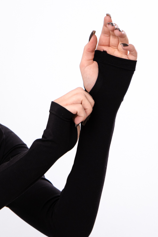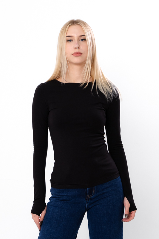 Особливістю цієї моделі є вирізи під великий палець на манжетах, що додає лонгсліву оригінальності та зручності. Такий елемент не тільки виглядає стильно, але й дозволяє вам комфортно носити одяг без зайвого стиснення рук, а також забезпечує додатковий захист від холоду.