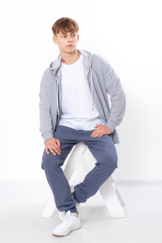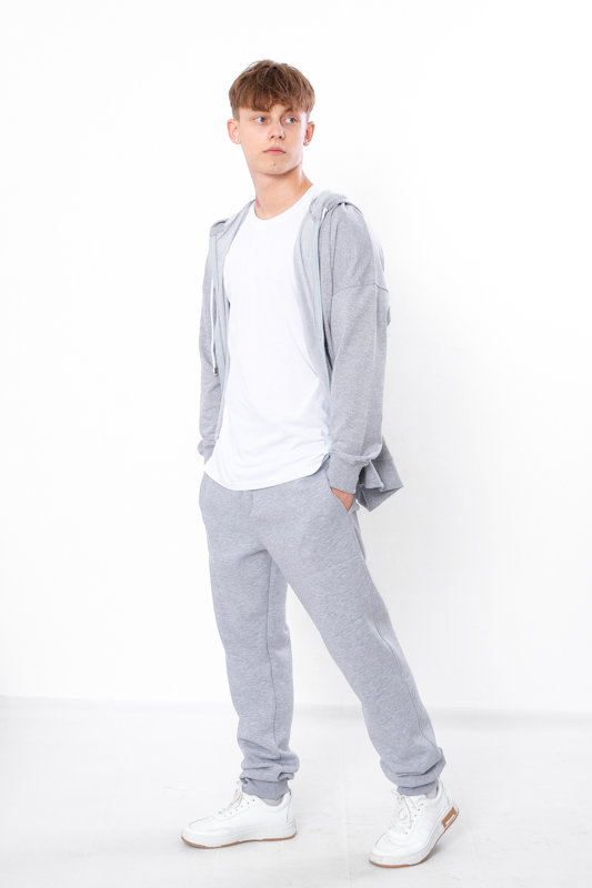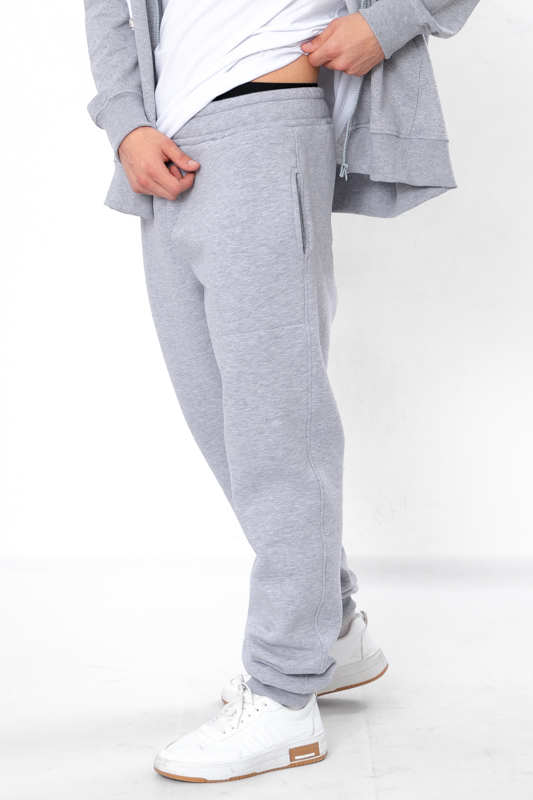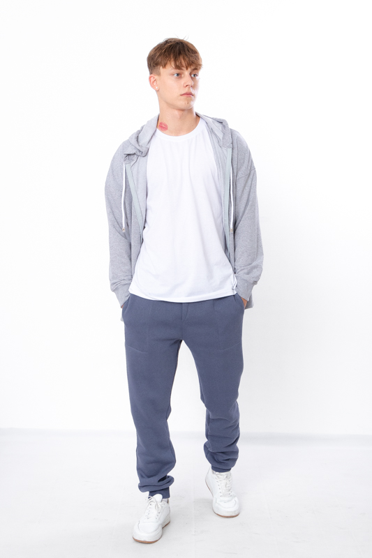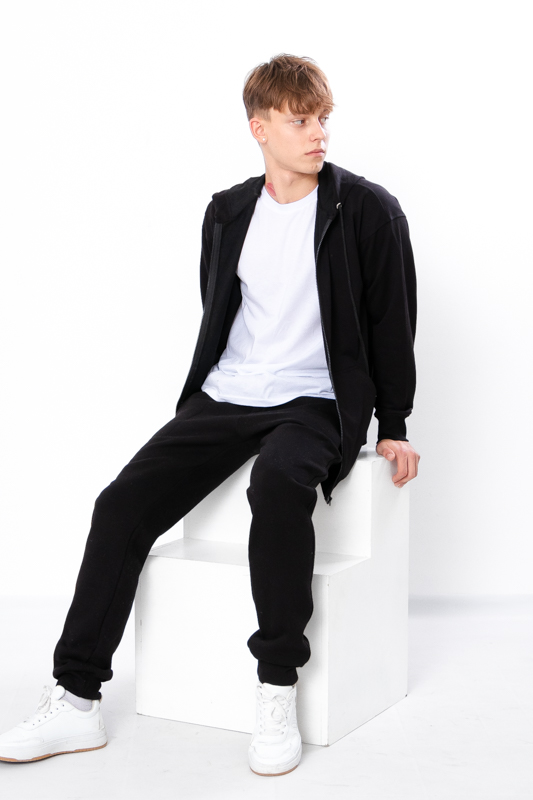 Спортивні чоловічі штани пошиті з трьохнитки однотонної. Трьохнитка — це щільна трикотажна тканина, яка складається з трьох шарів ниток, що робить її особливо теплою та зносостійкою. Завдяки своїм властивостям, трьохнитка є ідеальним вибором для виготовлення верхнього одягу, спортивних костюмів і теплих худі.