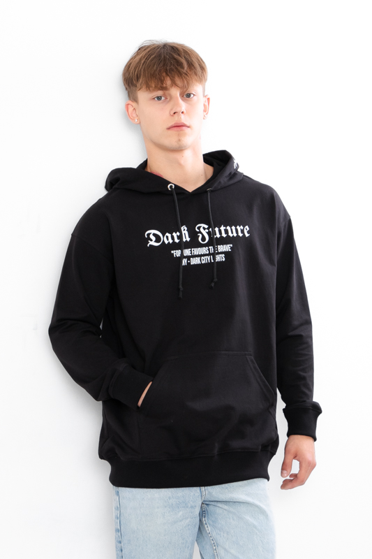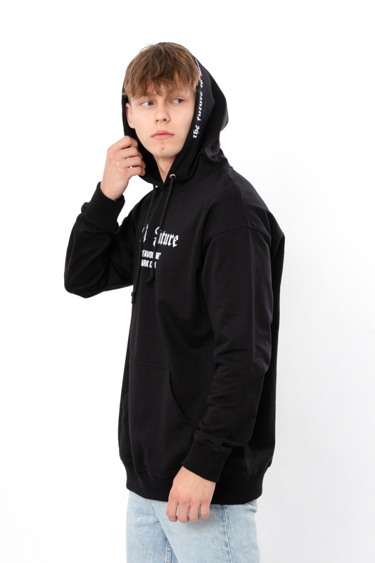 Стильний худі з капюшоном для чоловіків пошитий з однотонної двонитки. Спереду є кишеня "кенгуру". Манжети на рукавах і по низу худі виконані з еластичного полотна. Капюшон має шнурок для затягування. Спереду нанесений стильний малюнок. Худі чудово поєднується з джинсами або спортивними штанами. Полотно гарної якості. Тому, при правильному догляді, виріб можна буде носити не один сезон. Може давати усадку після прання.