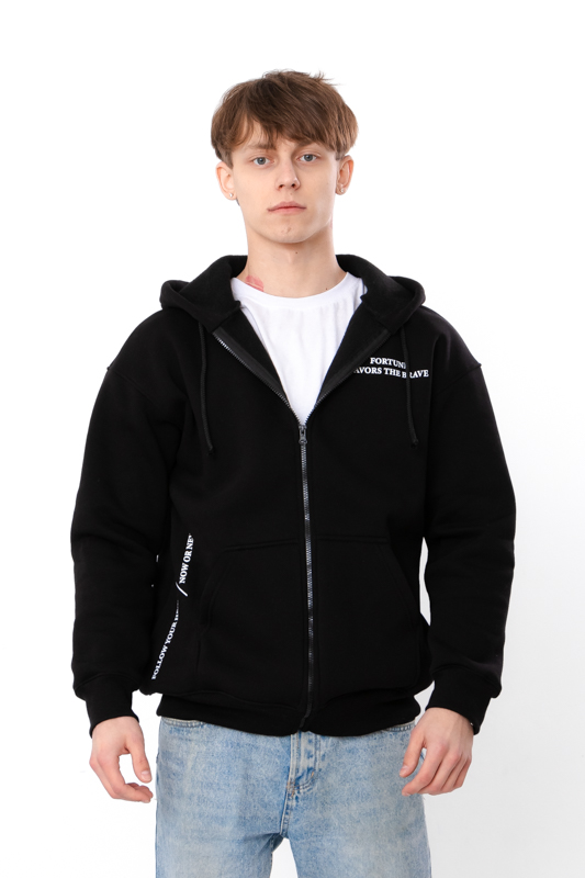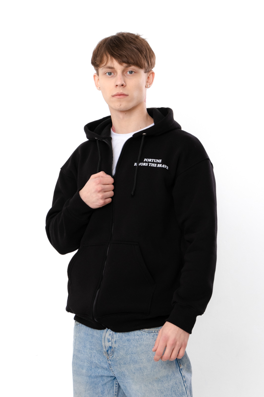 Капюшон додає худі функціональності та захищає від вітру, а блискавка стає важливим елементом дизайну, який робить модель ще зручнішою в повсякденному житті. Загальний вигляд залишається лаконічним і сучасним, без перевантаження деталями, що особливо цінується в молодіжній та міській моді.