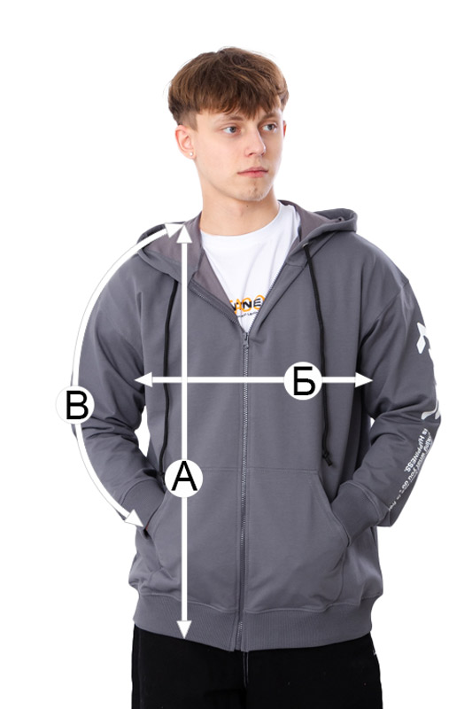 | В - Довжина рукава від горловини, +/-1см | 77 | 79 | 81 | 83 |