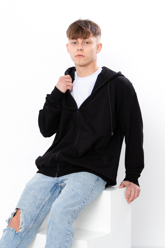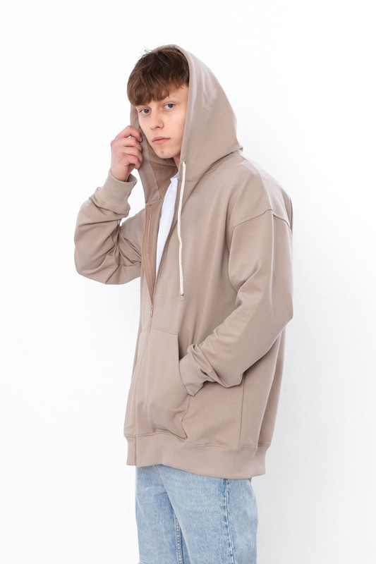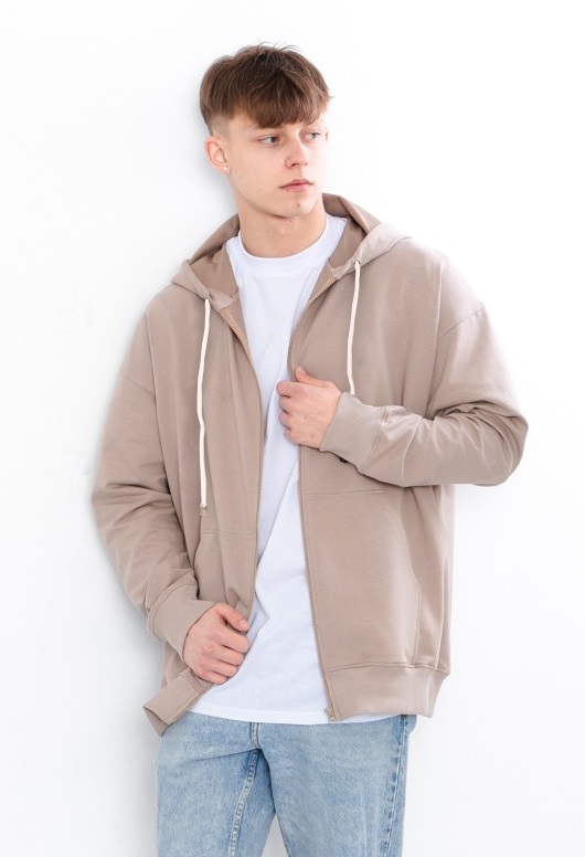 Універсальне та практичне худі для хлопців в стилі oversize пошито з однотонної двонитки. Модель широкого вільного крою з капюшоном, застібається на блискавку. Рукава мають спущену лінію плечей. Спереду на худі є кишені. На рукавах та по низу є широкі еластичні манжети. Модель пошита в базових віддтінках, тому чудово буде поєднуватися з джинсами, брюками та спортивними штанами. Полотно гарної якості. Тому, при правильному догляді, його можна буде носити не один сезон. Може давати усадку після прання.