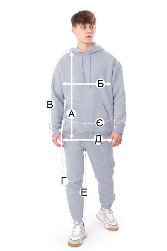 | Г - Довжина штанів по бічному шву, +/-2см | 105 | 107 | 110 | 112 |