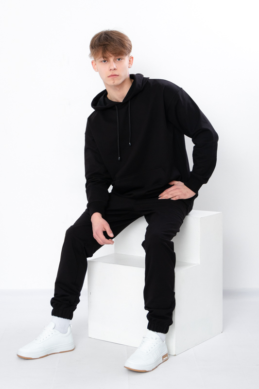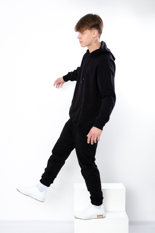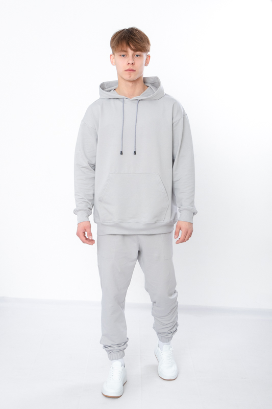 Чоловічий костюм в спортивному стилі виділяється своєю оригінальністю і, в той же час, він комфортний в носінні. Демісезонний костюм колекції зшитий з популярного, а головне зручного полотна двунитка, яке прослужить довго і подарує чудові відчуття в процесі носіння. Вільний крій моделі не сковує рухів і підходить всім типам фігури. Брюки доповнені прорізними кишенями і талієвим шнурком, для більш комфортного носіння. Худі з просторим капюшоном на кулісці, має кишеню, рукава худі на манжеті.