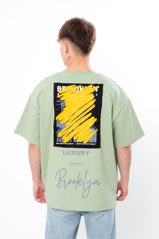 Стильна чоловіча футболка oversize пошита з однотонної двонитки. Має широкі рукава, округлу горловину та трохи подовжений крій, що створює більш вільний стиль. На спині має сучасний стильний накат. Такі футболки чудово поєднуються з джинсами або шортами. Полотно гарної якості. Тому, при правильному догляді, футболку можна буде носити не один сезон. Може давати невелику усадку після прання.