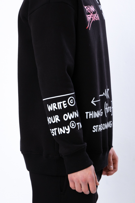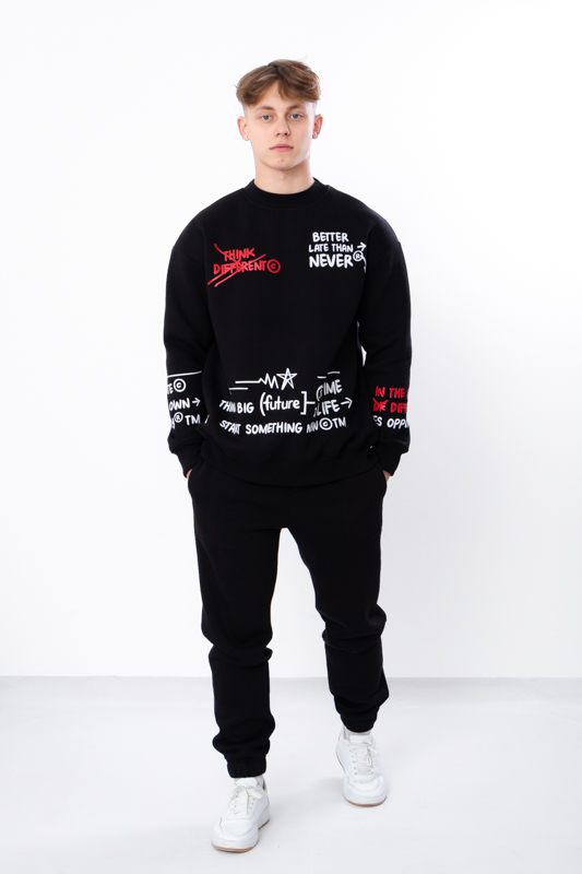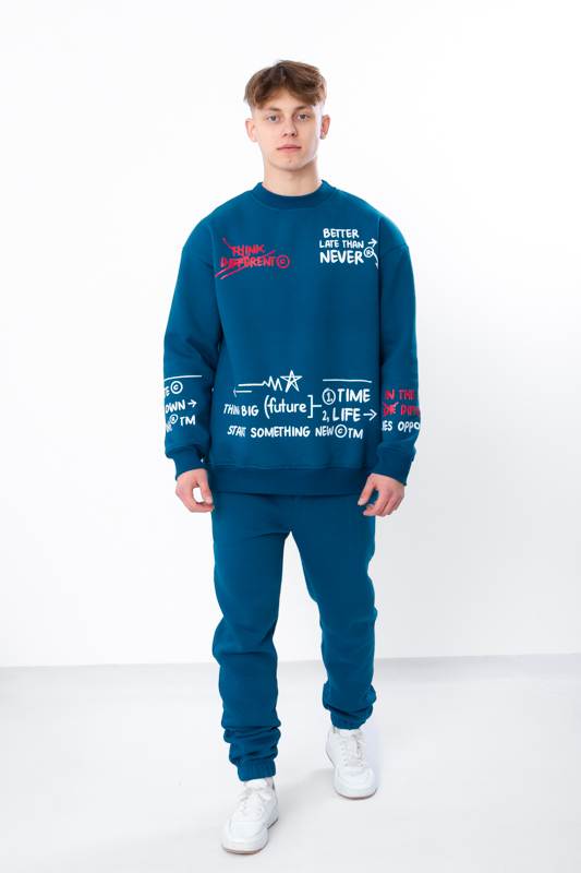 Світшот має просторий силует, створює відчуття невимушеності та затишку. Стильний принт надає модного акценту і робить річ більш оригінальною. Штани мають дві бічні кишені та еластичні манжети. Еластичний низ на резинці для комфортної посадки.Такі штани практичні та добре зігріють в холодну пору року.