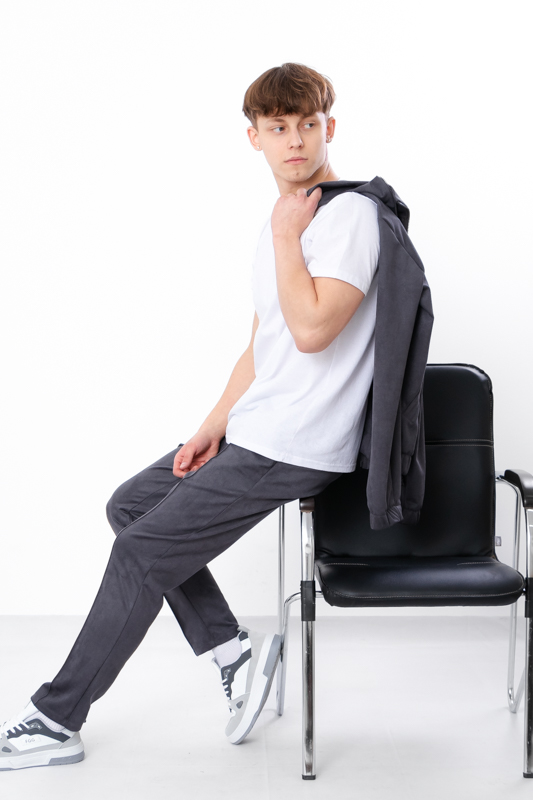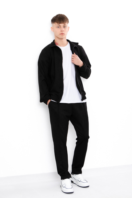 Фасон костюма розроблений з урахуванням потреб молодих і впевнених у собі чоловіків. Куртка на блискавці має зручний комір і кишені, що додають практичності, а брюки зі стандартною посадкою та еластичним поясом забезпечують комфорт рухів. Разом вони створюють гармонійний комплект, у якому однаково добре відпочивати вдома, виходити на прогулянку чи зустрічатися з друзями.