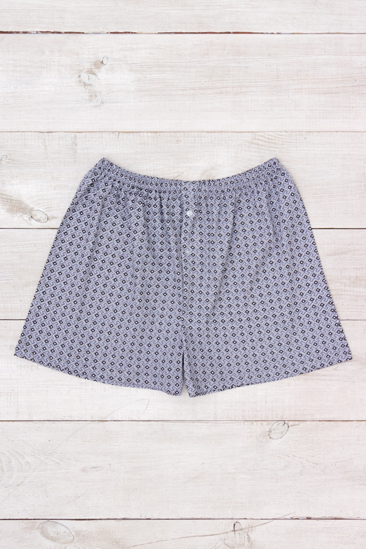 Чоловічі сімейні труси з принтованого куліра на резинці. Труси декоровані гудзиками.