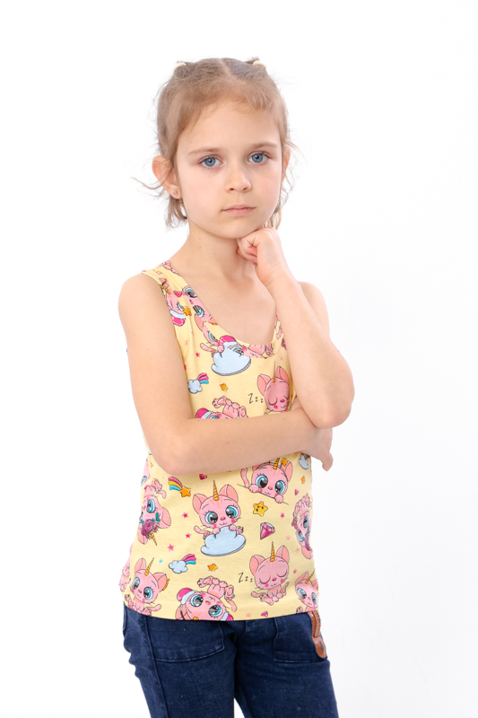 Еластичний виріз на горловині та зручні шви не обмежують рухи і забезпечують комфорт протягом усього дня. Майка ідеально підходить для прогулянок, активних ігор, а також для домашнього використання в теплу пору року.