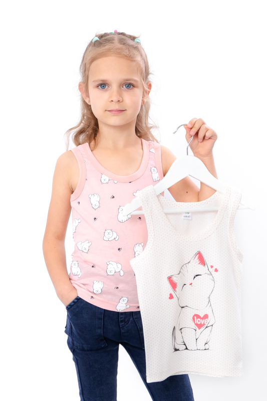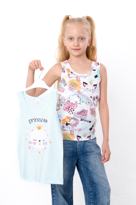 Такий набір — це практичне рішення на кожен день, яке поєднує комфорт, якість і естетику. Комплект із однотонної та принтованої майки дозволить маленькій модниці самовиражатися, водночас залишаючись у зручному та функціональному одязі.