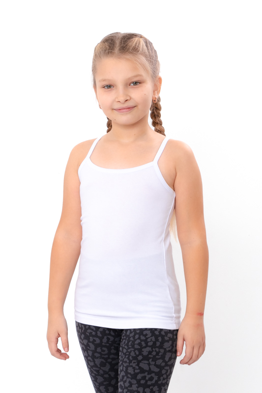 Ця однотонна майка на бретелях для дівчинки ідеально підходить для повсякденного носіння та активного відпочинку. Виготовлена з м'якої та дихаючої тканини, вона забезпечує максимальний комфорт та свободу рухів. Класичний дизайн робить її універсальним елементом гардеробу, який легко поєднується з будь-яким іншим одягом.