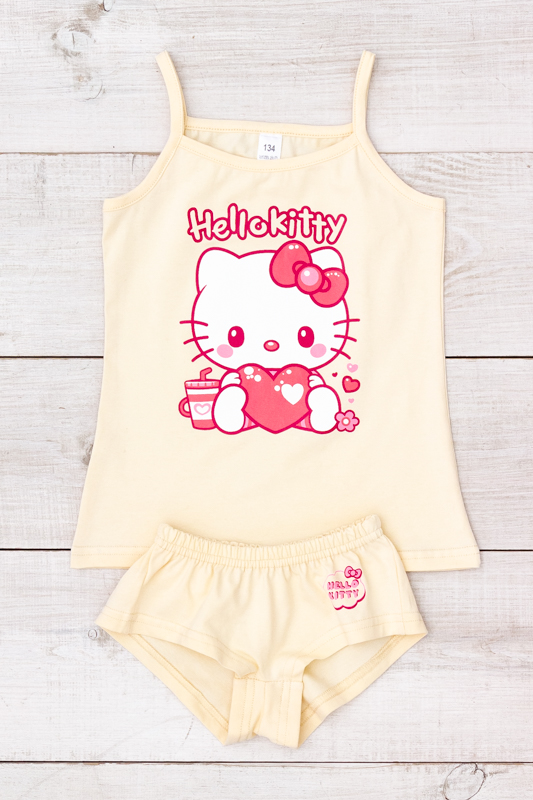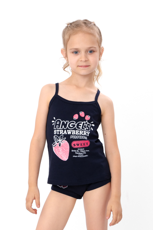 Цей комплект нижньої білизни для дівчаток складається з топа та трусиків, виготовлених із якісної однотонної фулікра — натурального трикотажного полотна з бавовни з додаванням еластану. Такий матеріал відзначається м’якістю, еластичністю та хорошою повітропроникністю, тому є чудовим вибором для щоденного використання, навіть для чутливої дитячої шкіри.