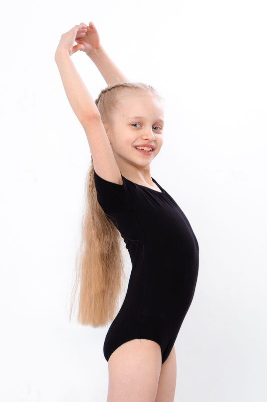 Модель має короткий рукав і зручний облягаючий фасон, який забезпечує надійну посадку на фігурі. Купальник не перекручується, не сповзає й гарантує повну свободу рухів, що робить його ідеальним для занять гімнастикою, танцями, хореографією, акробатикою чи фітнесом. Однотонне забарвлення додає лаконічності та дозволяє легко комбінувати з будь-якими легінсами, спідничками чи спортивними штанами.