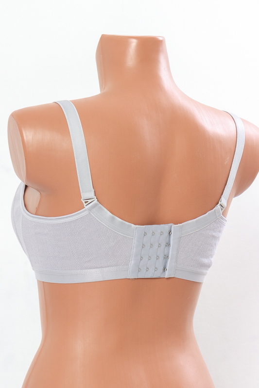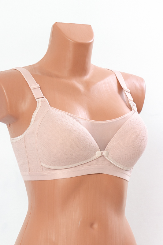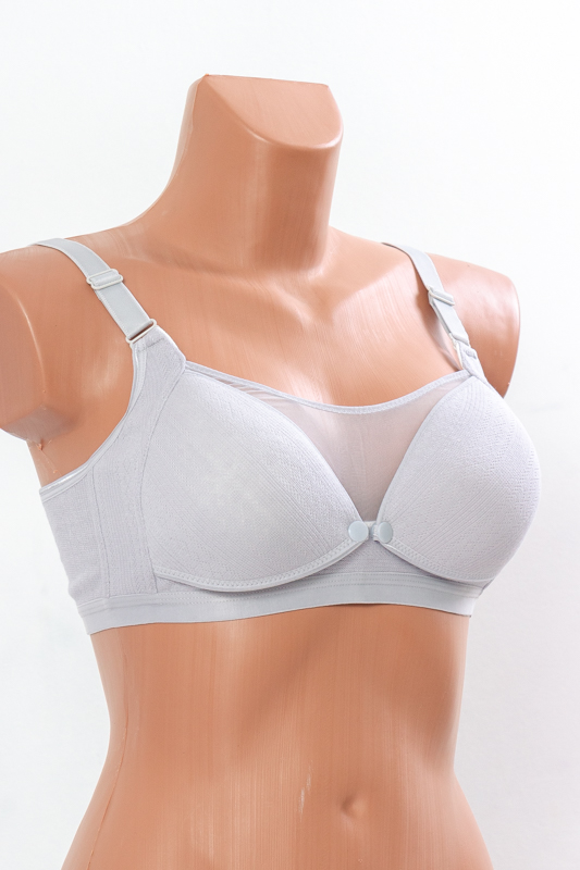 Бюстгальтер для годування з бавовни з сіткою між чашками на широких бретелях. Спинка широка, що дихає із застібкою на 4 гачки. Усередині чашок є бавовняна підкладка