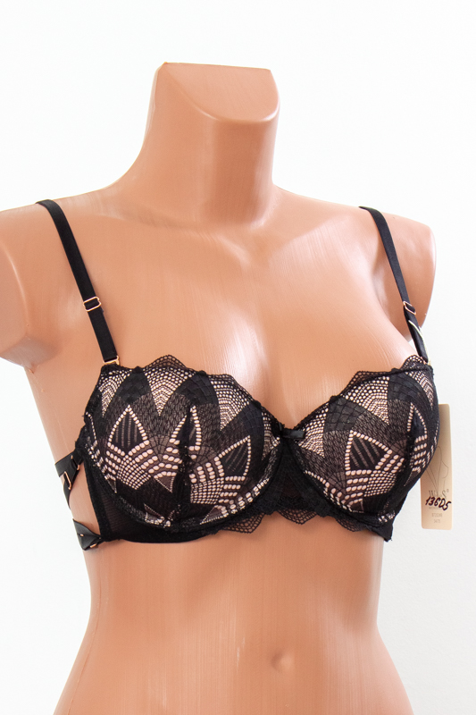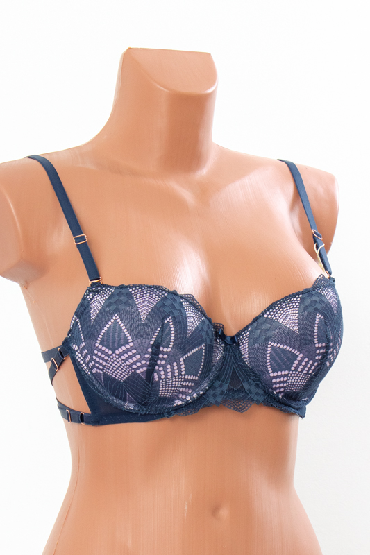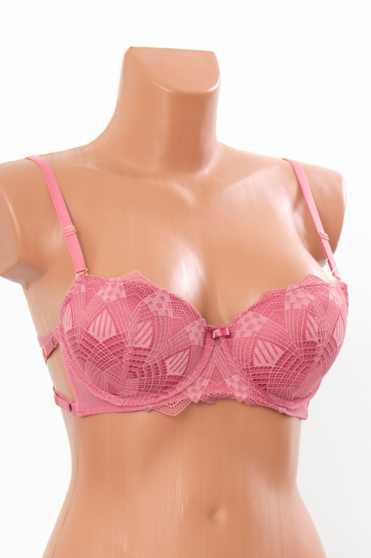 Мереживний бюстгальтер, з push up чашкою на кісточці. Спинка з регульованих шлейок із застібкою на три гачки.