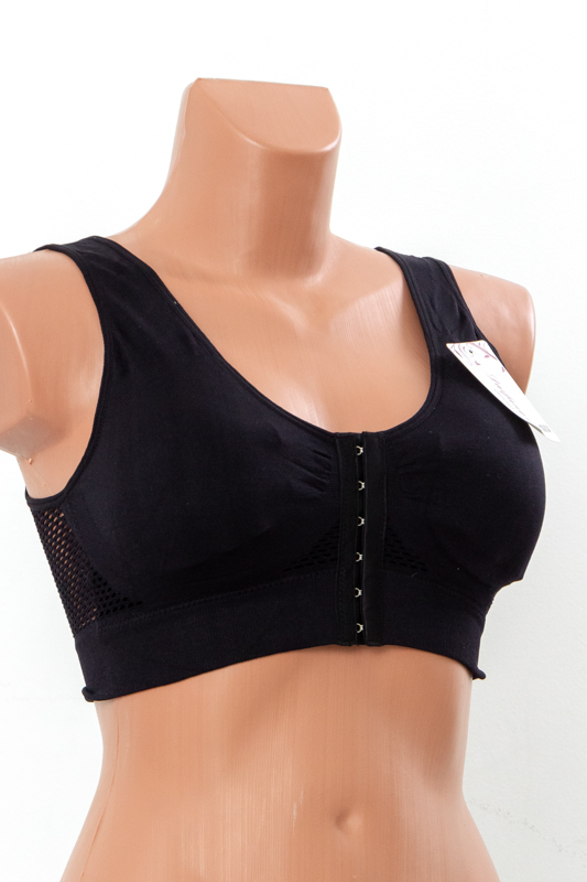 Спортивний топік із еластичного матеріалу з широкими бретелями. Підходить для спорту та повсякденного носіння. Застібка спереду на 6 гачків/3 подовження, поролонові знімні вкладиші. Зручна посадка та надійна підтримка. Без кісточки.