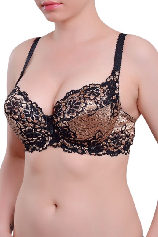 Бюстгальтер: класичний мереживний. Тип чашок: м'які повнорозмірні. Наповнювач чашки тонкий поролон. Розмір чашки: D. Склад тканини: 82% нейлон, 18% еластан. Шви на чашках: діагональні. Кісточки: так. Перемичка: широка. Бічні частини ліфа: середні. Застібка: ззаду на один гачок. Бретельки: середні, незнімні.