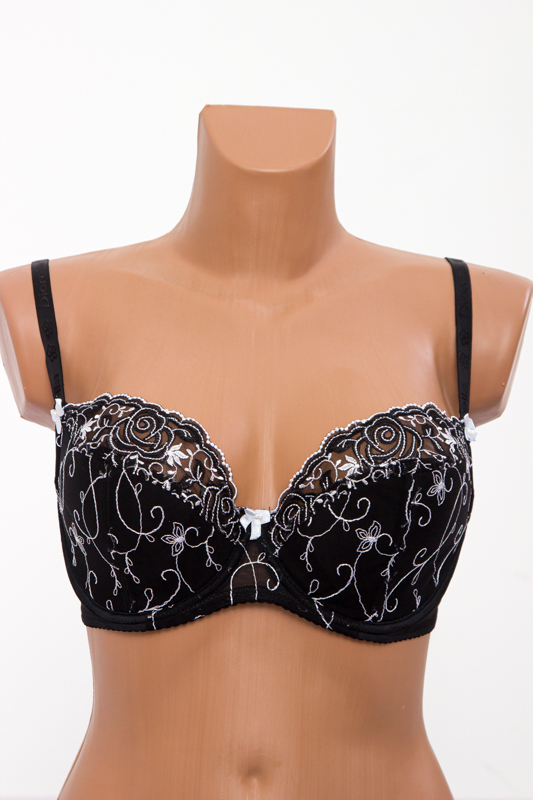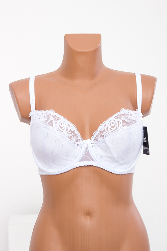 Бюстгальтер: мереживний. Тип чашок: повнорозмірні чашки з підкладкою. Наповнювач чашки: на тонкому поролоні. Розмір чашки: С. Склад тканини: 82% нейлон, 18% еластан. Шви на чашках: діагональні шви. Кісточки: так. Перемичка: широка. Бічні частини ліфа: середня. Застібка: ззаду на один гачок. Бретельки: середні, незнімні.