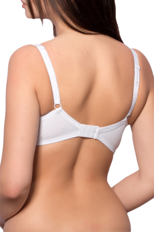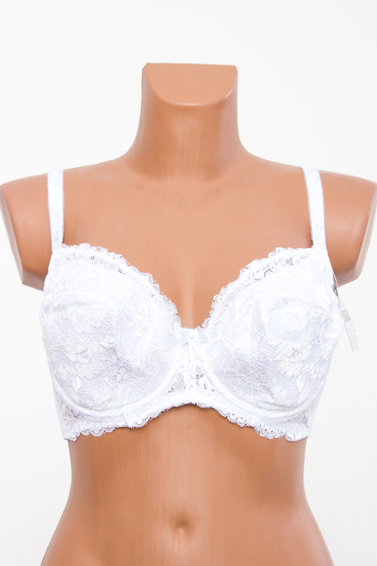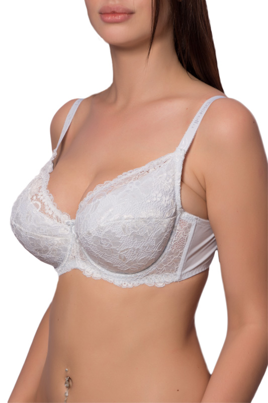 Бюстгальтер: мереживний, класичний. Тип чашок: повнорозмірні чашки. Наповнювач чашки тонкий поролон. Розмір чашки: D. Склад тканини: 82% нейлон, 18% еластан. Шви на чашках: діагональні шви. Кісточки: так. Перемичка: широка. Бічні частини ліфа: середня. Застібка: ззаду на два гачки. Бретельки: середні, незнімні.