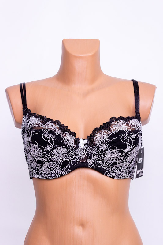 Бюстгальтер: мереживний. Тип чашок: повнорозмірні чашки з підкладкою. Наповнювач чашки: тонкий поролон. Розмір чашки: Склад тканини: 82% нейлон, 18% еластан. Шви на чашках: діагональні шви. Кісточки: так. Перемичка: широка. Бічні частини ліфа: середня. Застібка: ззаду на один гачок. Бретельки: середні, знімні.