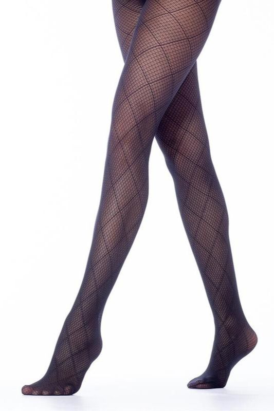 Ажурні фантазійні колготки з обплетеним еластаном, щільністю 60 ден, з широким комфортним поясом, гігієнічною ластовицею і плоскими швами. По всій нозі моделі розміщений візерунок у вигляді сітки та ромбів. Еластан, обплетений поліамідом, забезпечує хорошу розтяжність моделі і надає їй м'якість, а ажурне плетиво робить більш виразним і незабутнім