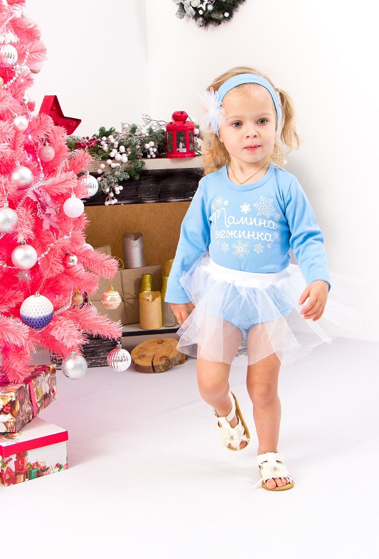 Представляємо Вам неймовірну новиночку - комплект "Мамина сніжинка" для Ваших маленьких принцес! Комплект складається з бодику (застібки - кнопочки між ніжок і на плечі), пишної спідниці з фатину і аксесуара на голову. Бодик прикрашає оригінальний принт на новорічну тематику. Полотно виробу - матеріал високої якості інтерлок (володіє хорошою еластичністю, міцністю, добре тягнеться в ширину). Такий комплект ідеально підійде на новорічні урочистості і свята, і Ви, і Ваша маленька леді обов'язково залишитеся задоволені!