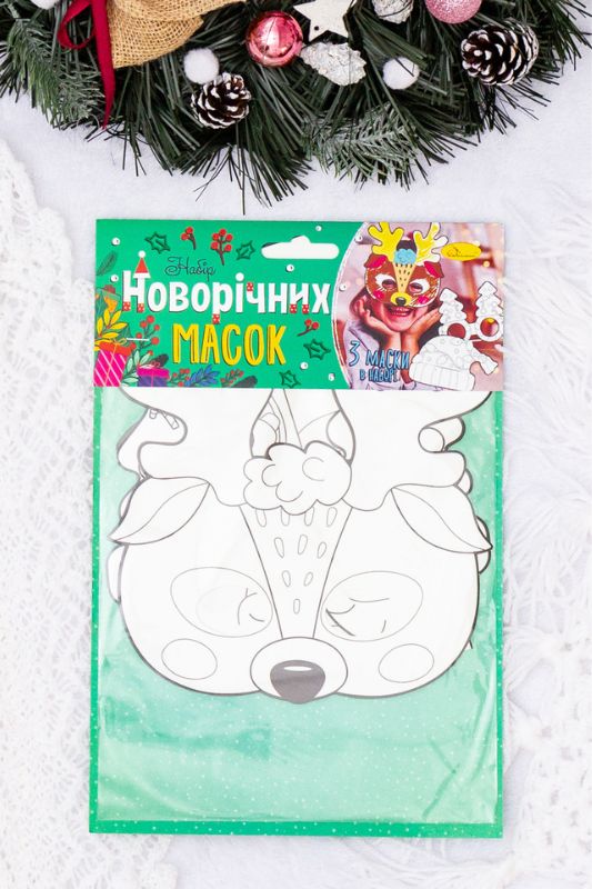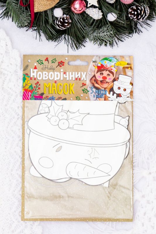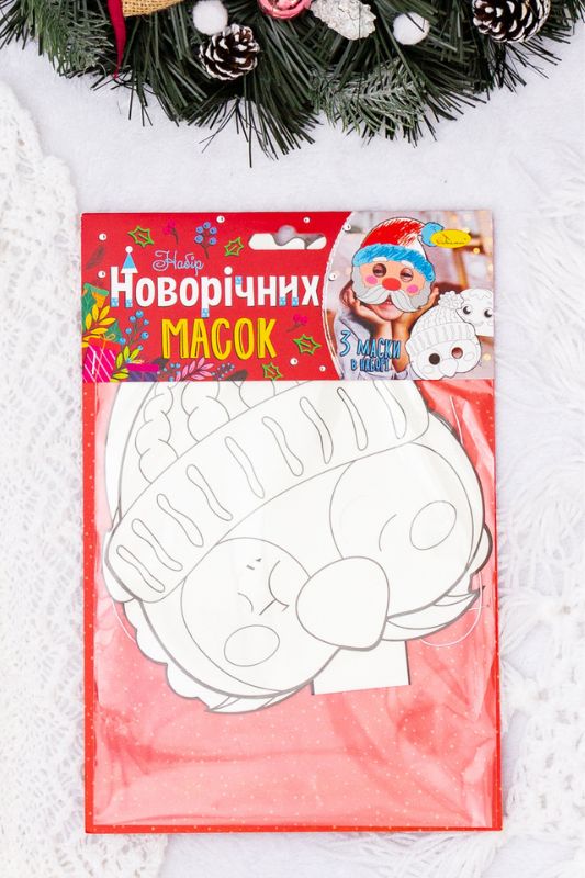 Розмальовка святкова! У наборі три картонні маски та резиночки для них.