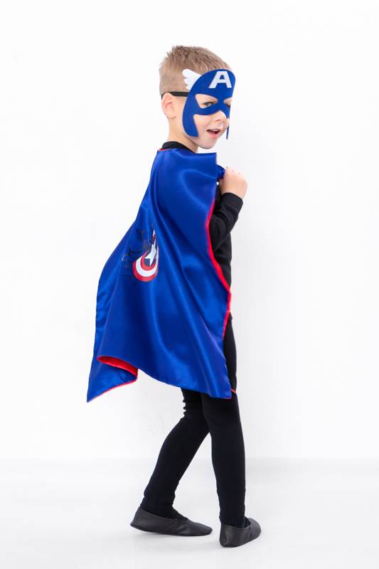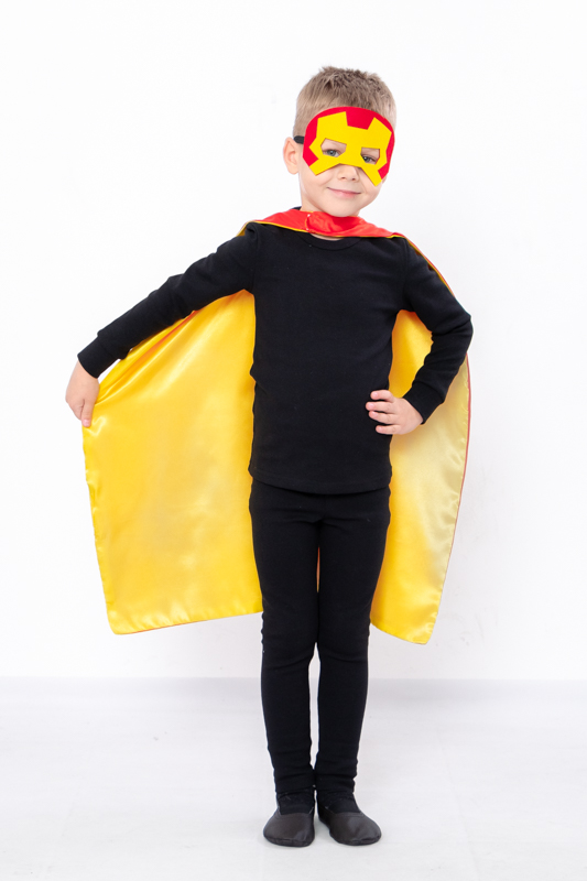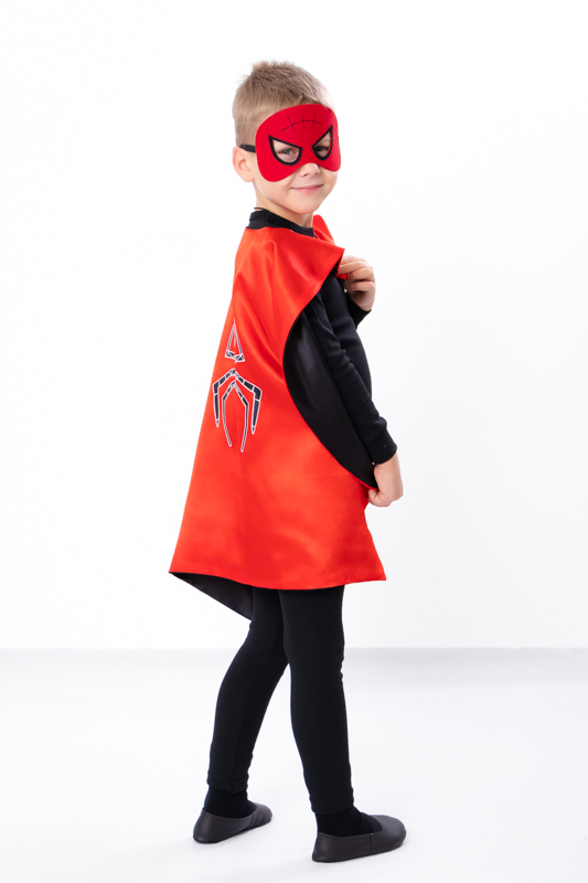 Маскарадний плащ з маскою відмінно підійде для тематичної вечірки, свята, дня народження. Він допоможе Вашому малюку відчути себе справжнім супергероєм. Створіть неповторну атмосферу свята супергероїв за допомогою яскравого костюма.