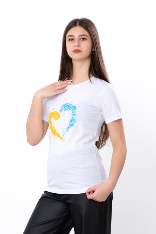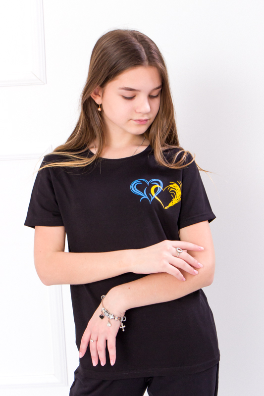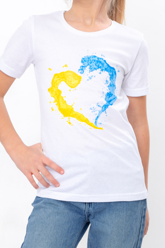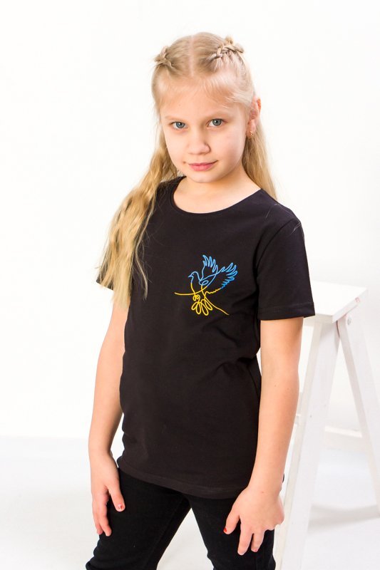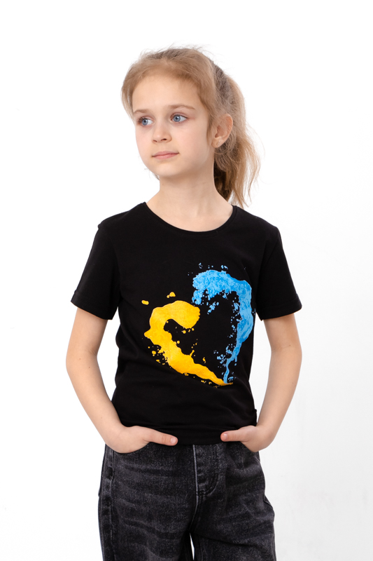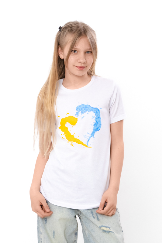 Класична футболка для дівчинки стане чудовим вибором для повсякденного гардеробу. Модель класичного крою з округлим вирізом забезпечує комфорт та свободу рухів. Футболка виготовлена з високоякісної бавовняної тканини і представлена в однотонних кольорах з патріотичним принтом, що додає особливого шарму та підкреслює патріотичний дух.