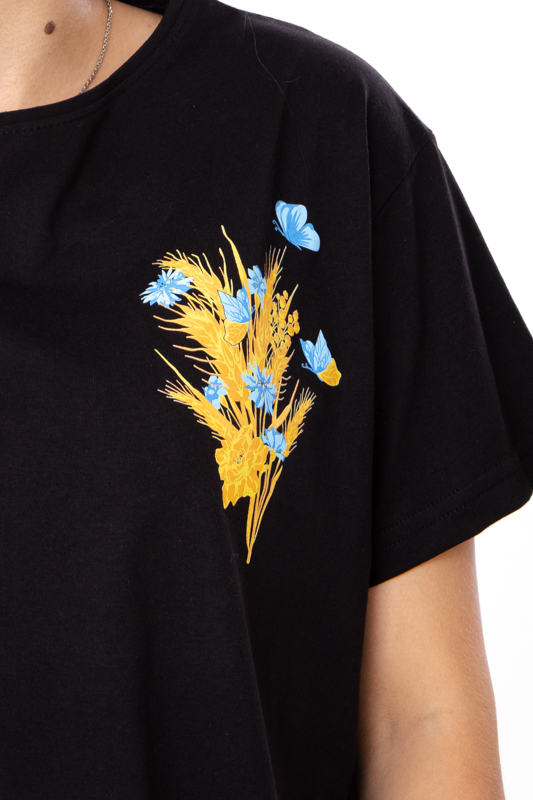 Основною родзинкою виробу є український принт, що відображає національну ідентичність, любов до культури й духу свободи. Такий дизайн надає футболці змістовності й робить її більше, ніж просто одягом — це спосіб самовираження та гордості за свою країну.