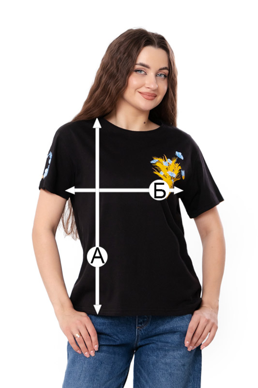 | А - Довжина футболки (+/-2см) | 65 | 66 | 67 | 67 | 68 | 69 | 71 | 72 |