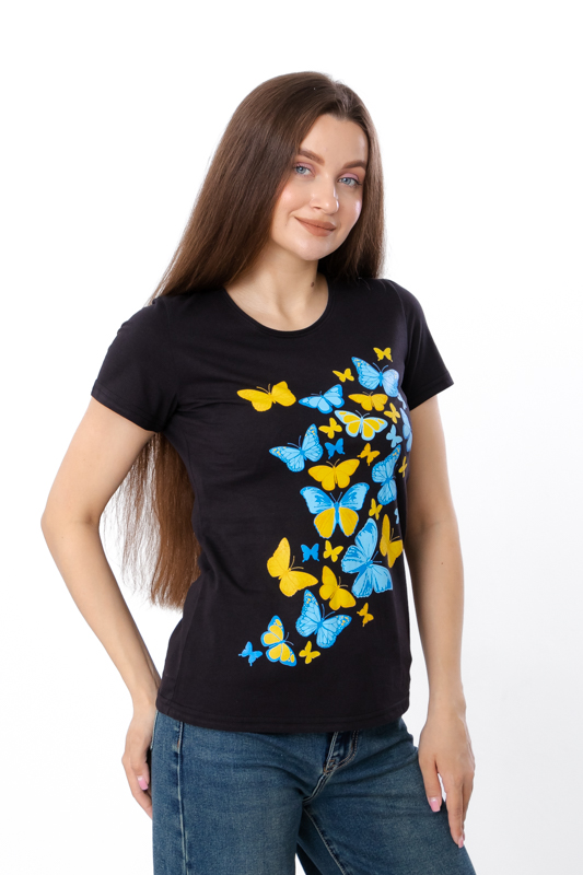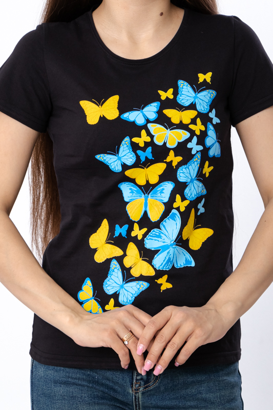 Оригінальна футболка стилізована з метеликами у жовто-блакитних відтінках створює образ, що надихає. Виріб виготовлено з якісного куліру, що добре зберігає форму та колір. Підходить для щоденного носіння, прогулянок, подій або подарунка. Ця футболка — ніжне втілення любові до України. Така футболка легко поєднується з джинсами, штанами чи спідницями — ідеальна база для створення стильних луків.