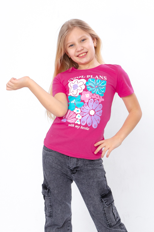 Стильна футболка для дівчинки ідеально підійде як для повсякденного використання, так і для особливих випадків. Виготовлена з високоякісного куліру, який забезпечує природню м'якість та комфорт.100% бавовна зробить носіння футболки приємним на дотик і дозволить шкірі дихати.Однотонне полотно підкреслює стильний принт, що надає футболці індивідуальності.Зручний округлий виріз робить цю футболку чудовим вибором для активних дівчат, які цінують комфорт та модний вигляд.