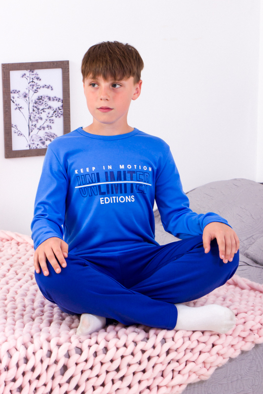 Зручна та комфортна піжама для хлопчиків, виготовлена з м'якого та дихаючого інтерлока — ідеальний вибір для ночівлі або відпочинку вдома. Інтерлок забезпечує м'якість і еластичність, не обмежуючи рухів, а також добре зберігає форму після прання.