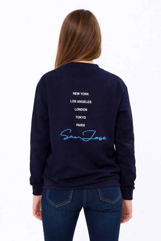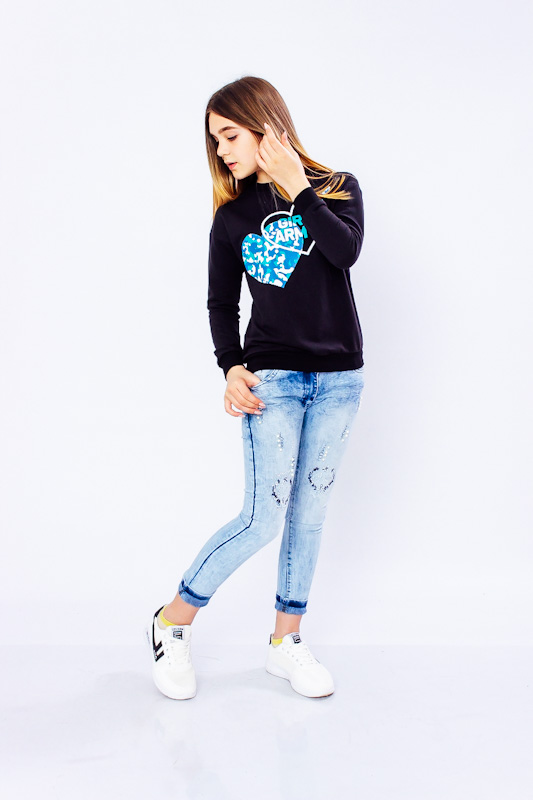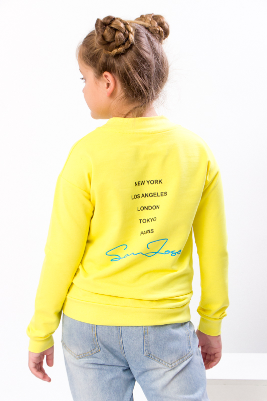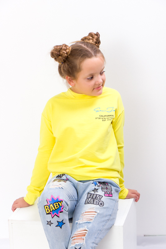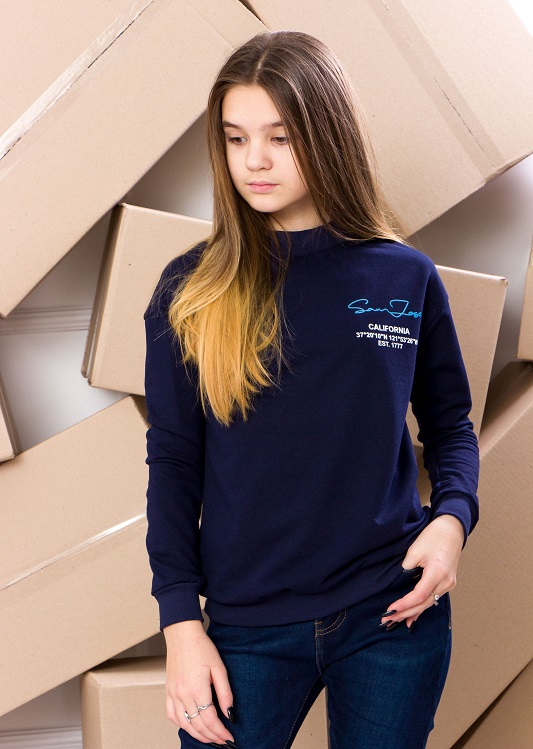 Світшот торгової марки «Трикотажний Край» - це симпатичний, зручний предмет одягу, який займе гідне місце в гардеробі підлітка. Стильний дизайн, цікаве колірне рішення, якісна пряжа - така модель не залишить байдужими ні дівчинку, ні маму. Для виготовлення виробу фахівці бренду використовували тільки екологічно чисті, гіпоалергенні матеріали, крізь які вільно проходить повітря. Такий світшот і зігріває, і вбирає зайву вологу, при цьому відрізняється повітропроникністю. Виріб вільного крою забезпечить комфорт під час носіння і не буде сковувати рухів. Втачні довгі рукава, низ светру і горловина оформлені еластичними манжетами. Виріб прикрашає локанічний текстовий принт. Світшот прекрасно сідає по фігурі, не втрачає форми і зовнішньої привабливості навіть після багаторазового прання. Оригінальний світшот можна надіти на будь-який святковий захід. Універсальність пошиття виробу дозволяє поєднувати його з багатьма речами з гардеробу.
