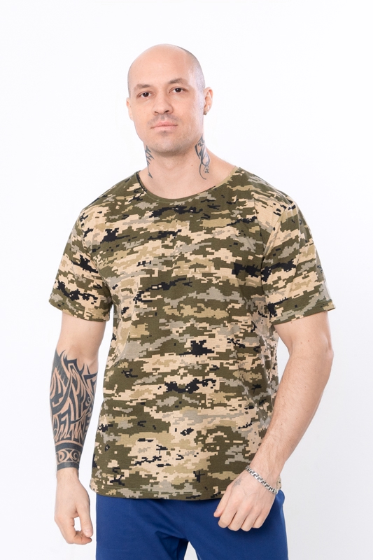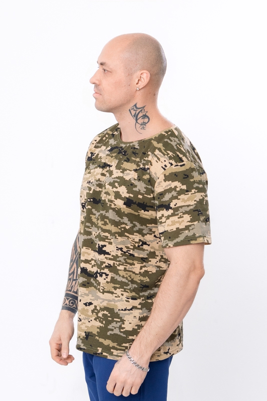 Чоловіча футболка з куліру в піксельному дизайні – це поєднання комфорту та патріотичного стилю. Натуральний матеріал забезпечує приємні тактильні відчуття, дозволяючи шкірі дихати. Ідеальний вибір для активного способу життя, повсякденного носіння або військового стилю. Легка тканина, ідеальна посадка та витривалий принт роблять цю модель незамінною для щоденного носіння.Ця футболка стане чудовим доповненням до військового, спортивного чи кежуал-образу.