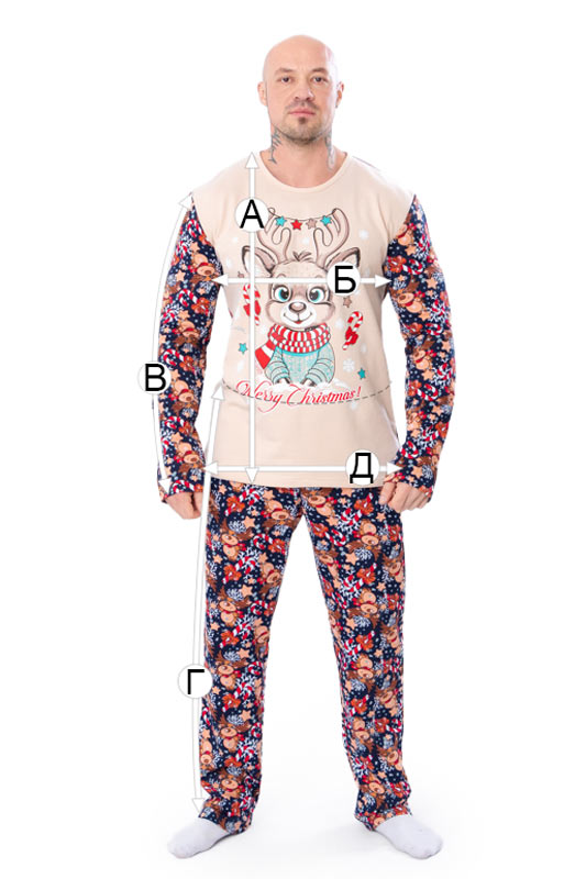 Чоловіча піжама ТМ "Трикотажний Край", виконана з м'якого однотонного начосу. У наборі: кофта, декорована новорічним принтом, та зручні штани на резинці. Якісний легкий матеріал забезпечить максимально комфортний і приємний сон.