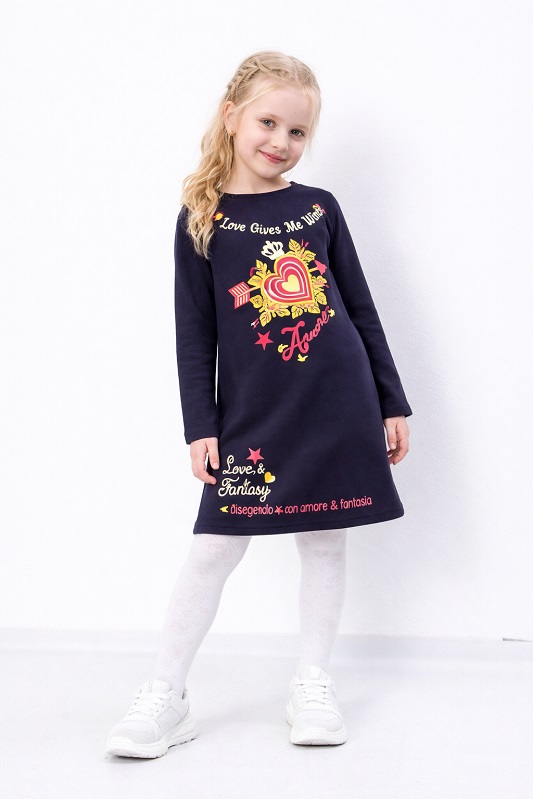 Сукня має зручний фасон, що не сковує рухів і підходить для різних активностей — від прогулянок до відвідування школи чи дитячого садка. Тканина з начосом забезпечує додаткове тепло, що робить цю модель чудовим вибором на осінь та зиму.