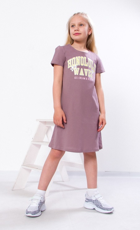 Модель має зручний вільний крій, який не сковує рухів і підходить для активного способу життя дитини. Довжина сукні — до коліна, що забезпечує оптимальний баланс між комфортом і практичністю. Верхня частина оформлена у стилі класичної футболки з короткими рукавами та округлою горловиною, що робить сукню універсальною та зручною для щоденного використання.