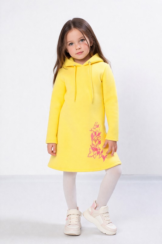 Тепла однотонна сукня для дівчинки, виготовлена з м'якого і комфортного полотна 3-нитки з начосом. Модель вільного крою, представлена з капюшоном, виріб прикрашає ненав'язливий квітковий принт. Відмінно підходить для повсякденного носіння на прогулянці, в саду та школі. У нашій сукні ваша дитина буде комфортно почуватися, також вона не сковує руху. Сукня для дівчинки від ТМ "Трикотажний край" - це стильна та якісна річ на користь Вашої дитини!
