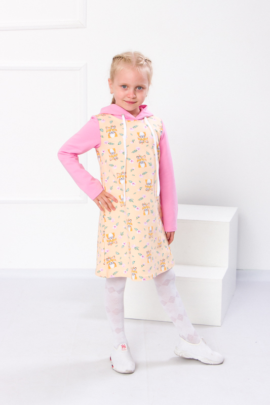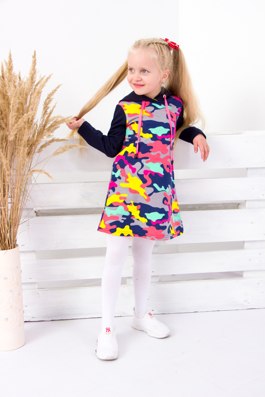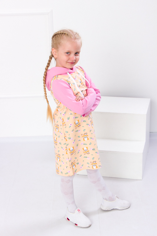 Якщо батьки вважають, що одяг має бути якісним і практичним, то діти впевнено Вам скажуть, що красивим і стильним. Для юних модниць створено утеплене плаття-туніка з капюшоном. Виріб, призначений для дівчинки, пошитий фахівцями відомого українського бренду «Трикотажний Край». Завдяки прямому крою дитині забезпечений абсолютний комфорт, адже його рухи не будуть обмежені. Для створення туніки використане полотно - принтована двохнитка,тканина м'яка і приємна на дотик, відрізняється гігроскопічністю і міцністю.