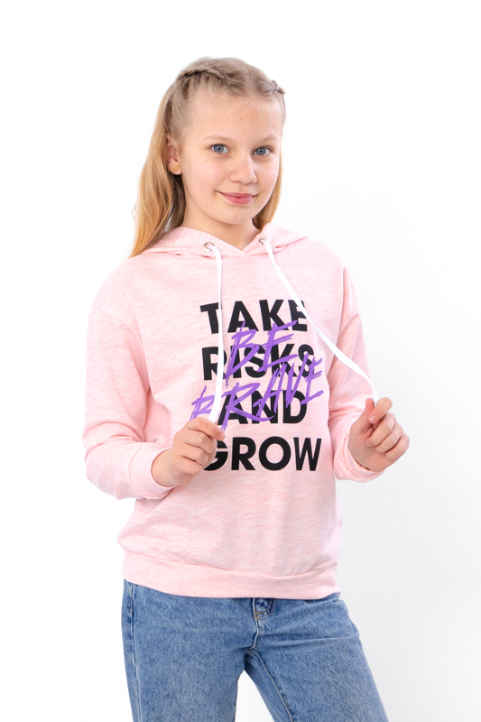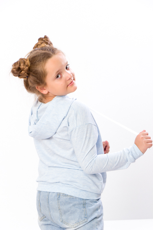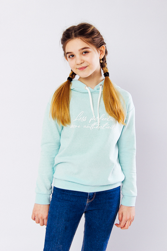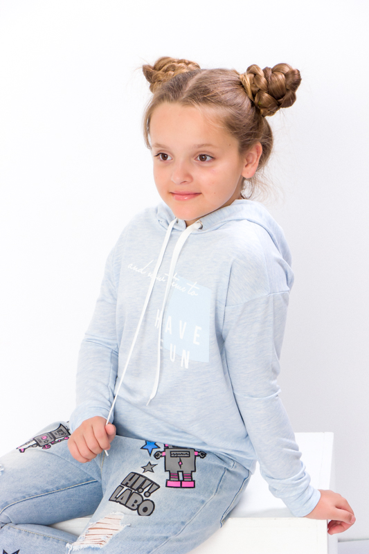 Одяг, розроблений фахівцями бренду "Трикотажний Край" займає гідне місце в дитячому гардеробі, оскільки він зручний, якісно виготовлений, а також молодіжний. Ці вироби радують ніжними тактильними властивостями, презентабельністю і акуратним пошиттям. Вони скроєні таким чином, щоб дарувати максимальний комфорт і підкреслювати почуття стилю дитини. Худі з капюшоном для дівчинки, по переду декорований принтом - написом, стане фешенебельним і корисним придбанням для дівчинки. Оригінальність дизайну цього виробу надають модні приспущені рукава. Нижній край такого предмету одягу оснащений манжетою, яка регулює його ширину. Модель на 70% складається з повітропроникних, гігроскопічних і гіпоалергенних бавовняних волокон, які доповнені нитками еластану. Такий матеріал делікатно впливає на шкірний покрив, тому дарує затишок при носінні.